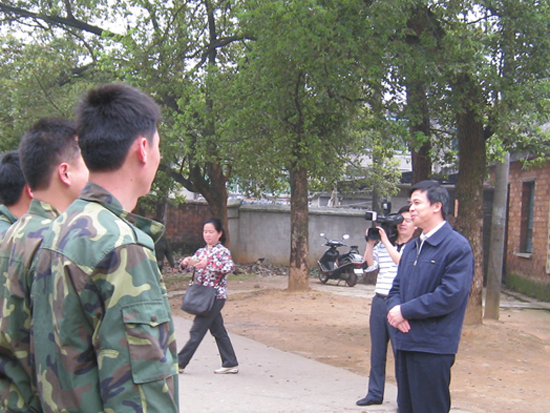 2009年3月20日国家林业局纪检组长陈述贤视察枫树山林场专业消防队。