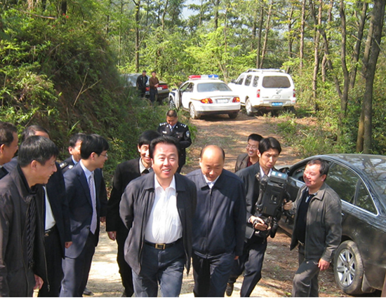 2009年4月10日现任江西省政协副主席、省发改委党组书记、主任许爱民深入林区,来到三宝分场瞭望台看望职工花。